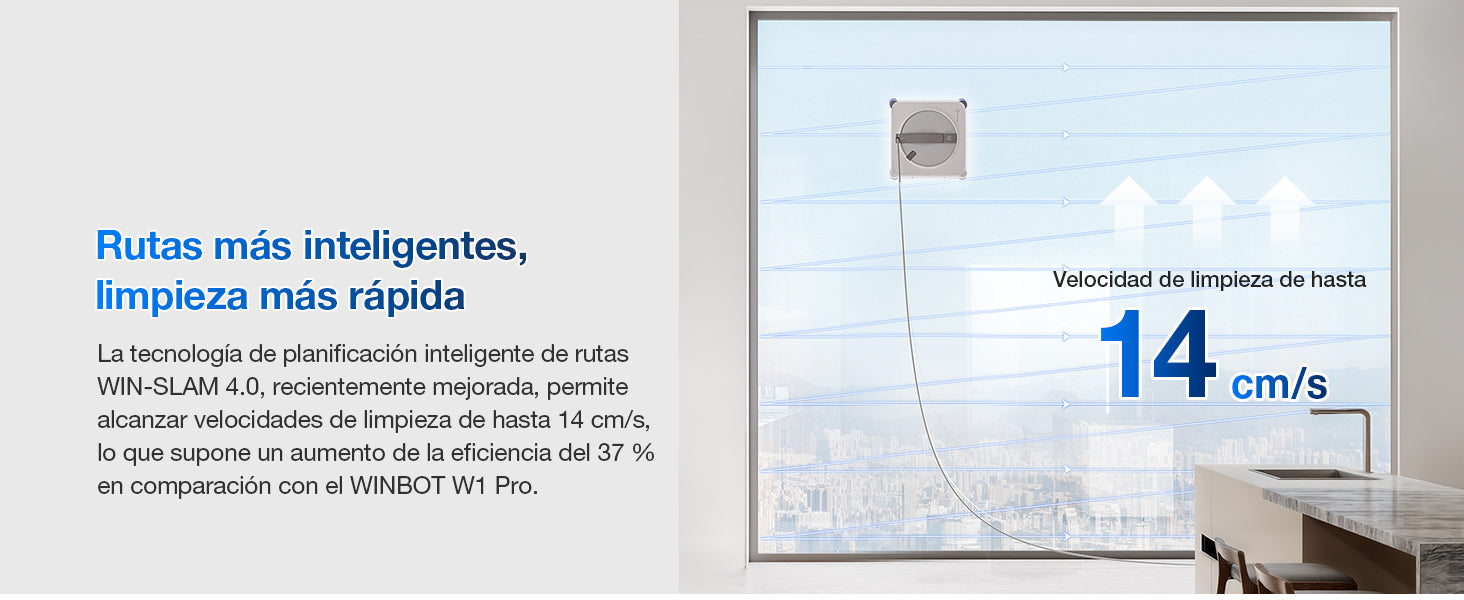 Descubre el futuro de la limpieza de ventanas: el Winbot Pro Omni es un robot inteligente y autónomo que se encarga de limpiar tus cristales con precisión y seguridad. Gracias a su potente succión, planificación inteligente y sensores de detección de bordes, deja las ventanas impecables y sin marcas, sin cables que interfieran.